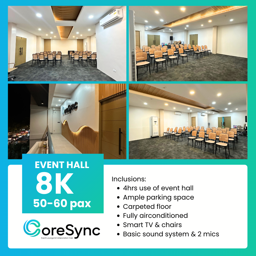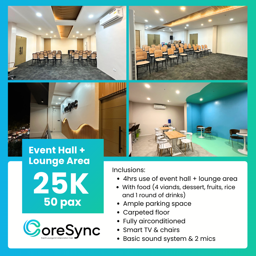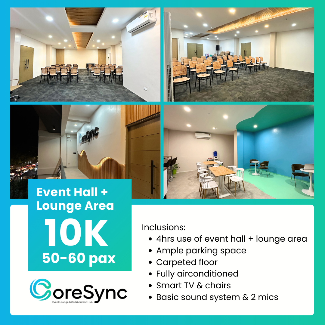 CoreSync is Davao’s premier-class event lounge and collaboration hub. A space for experts, professionals, and communities to connect, collaborate, and thrive.